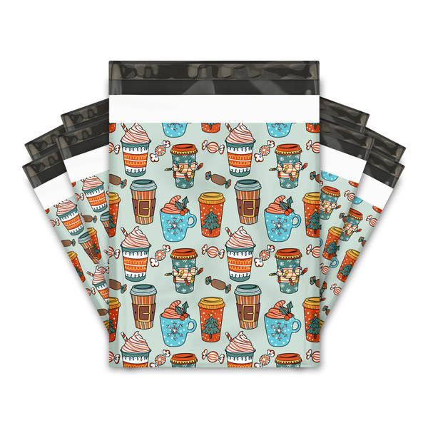 10x13" Christmas Coffees Designer Poly Mailers Shipping Envelopes Premium Printed Bags